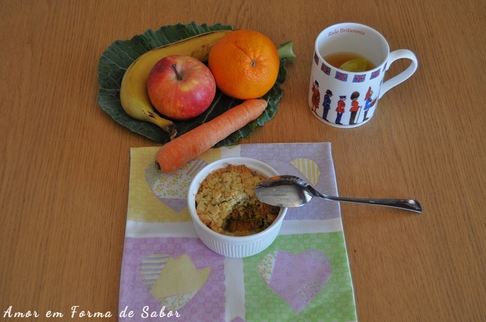 Acrescentei banana para dar mais um gosto extra a receita, mas, também, pode ser interpretado como, acrescentei o sólido do sumo verde ao crumble de banana, ou como queira, mas, o bom é que ficou mesmo bommm kkkk. E foi o meu lanche da tarde.